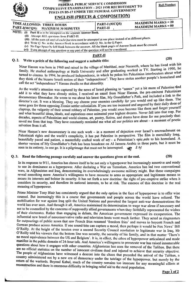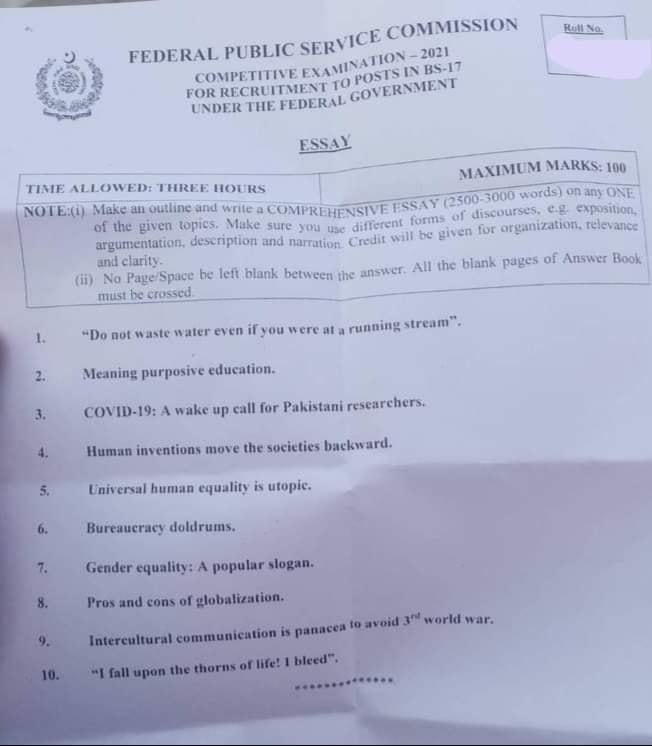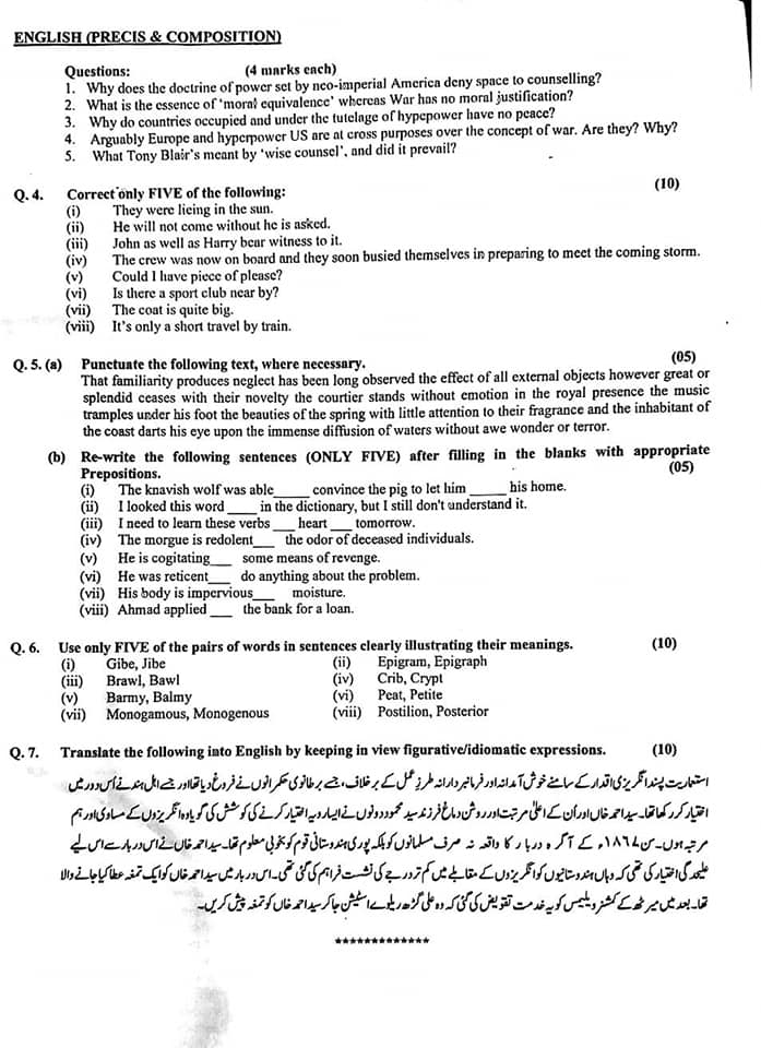 CSS Essay & English (Precis & Composition) 2021 Paper