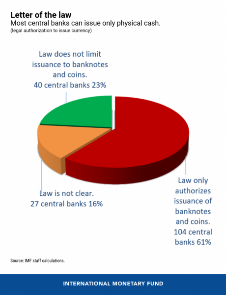 But, in fact, close to 80 percent of the world’s central banks are either not allowed to issue a digital currency under their existing laws, or the legal framework is not clear.